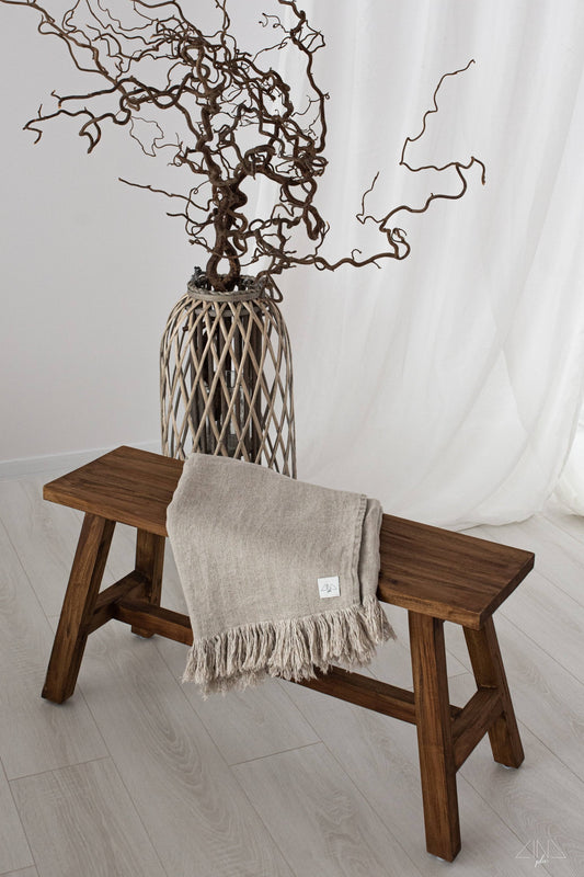 TRIMLEA Super Heavy Linen Throw in NEUTRAL
