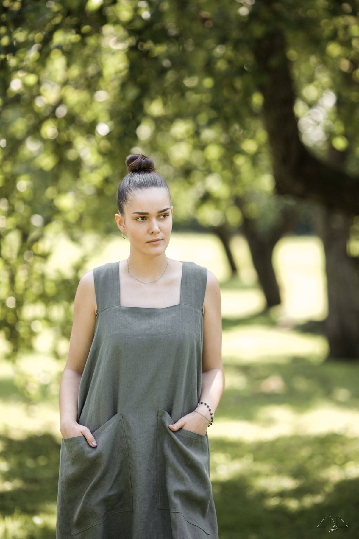 Linen Pinafore Apron for women is handmade from soft medium weight linen which is nice to wear in the kitchen or garden.